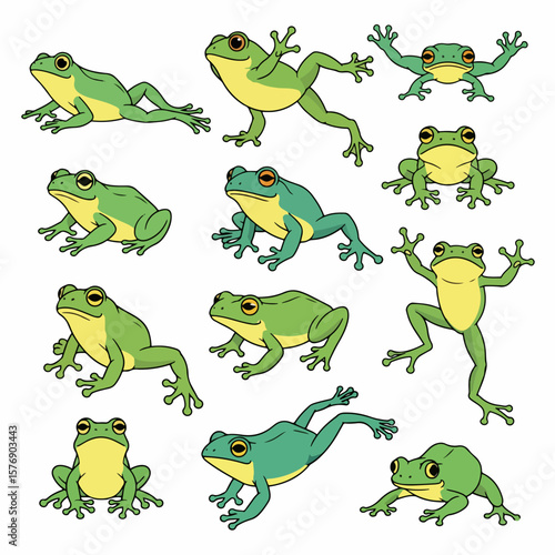 © Pandaman1102, Obraz premium Green frogs in various poses, isolated on white