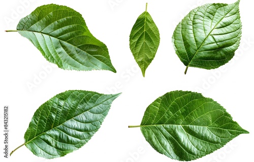 Fototapeta premium Green Fruit Tree Leaves in Various Angles on White Background