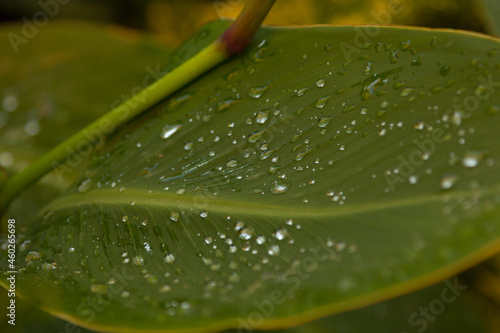 © Jorge, Fototapeta premium Green garden leaves with water droplets