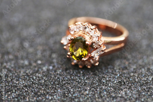 © Bordin, Fototapeta premium green gem stone and diamond on gold ring