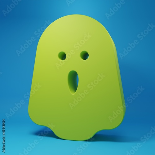 © Kostiantyn, Fototapeta premium Green Ghost icon isolated on blue background. Happy Halloween party. Minimalism concept. 3D render illustration