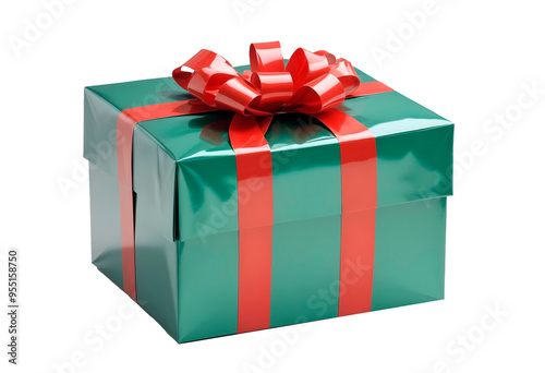 © Ksenia, Fototapeta premium Green gift box with a red ribbon and bow