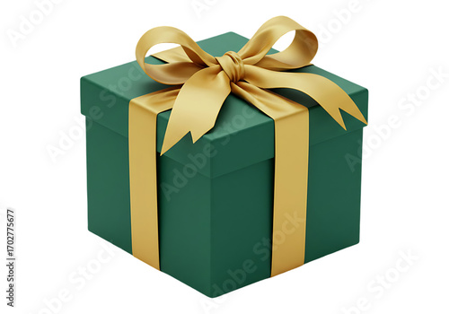 © Shamim Akhtar, Obraz premium Green gift box with gold ribbon isolated on transparent background