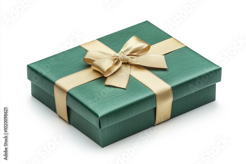 © Jiranun, Obraz premium green gift box wrapped with gold bow and ribbon