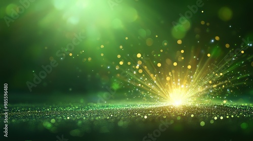 © sa-photo, Naklejka premium Green glowing background with a radiant, shimmering effect, creating a vivid and engaging visual space