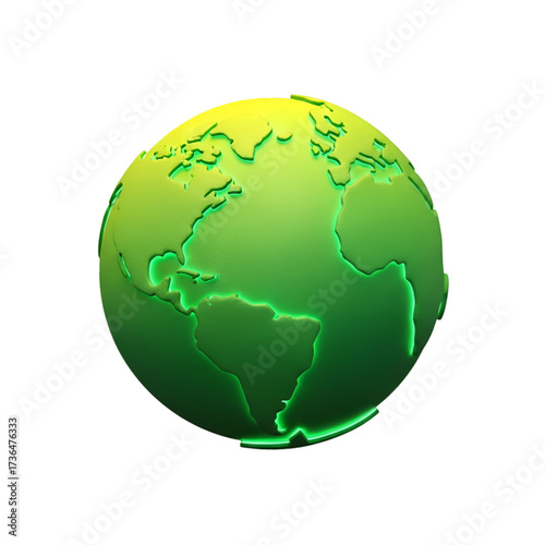 © Druvo, Naklejka premium Green glowing earth globe with continents outlined, isolated on transparent background