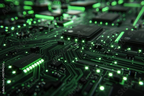 © Ольга Лукьяненко, Fototapeta premium green glowing electronic circuit board motherboard