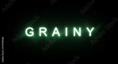 Obraz premium Green glowing grain text on dark background