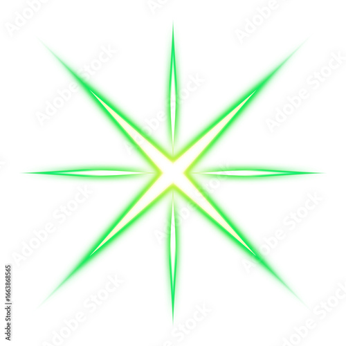 © imak, Fototapeta premium Green glowing radiant star with transparent background