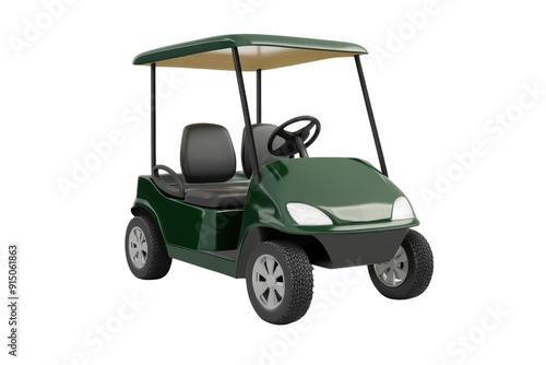 © Sodapeaw, Obraz premium Green golf cart isolated on transparent background. perfect for golfing, transportation, and recreational activities. Ideal for stock photo use.