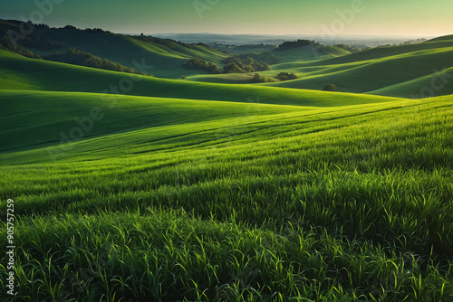 © eman, Obraz premium green gradient landscape with field and sky