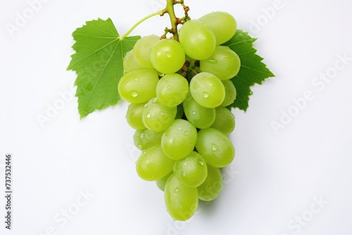 © Nognapas, Fototapeta premium Green grape with leaves isolated on white background