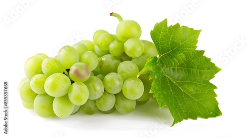 © Farid, Obraz premium Green grape with leaves isolated on white. With clipping path. Full depth of field.