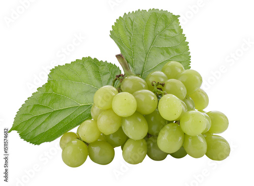 © kaiskynet, Obraz premium Green grapes and grape leaves isolated on a transparent background