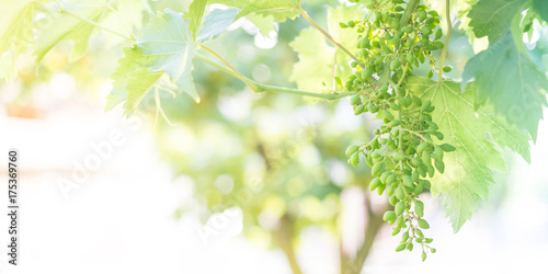 Fototapeta premium Green grapes in a vineyard