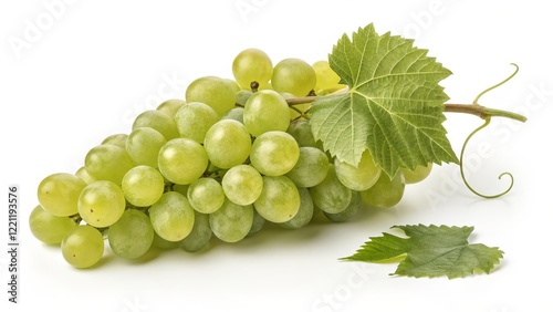 Obraz premium Green Grapes with Leaf Close-up Photography, Bunch Composition, Freshness...