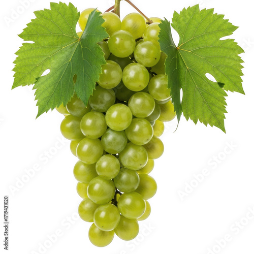 © Creative Art, Obraz premium Green grapes with leaves isolated on transparent background