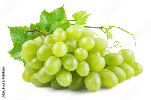 © Tim UR, Obraz premium Green grapes with leaves. Isolated on white