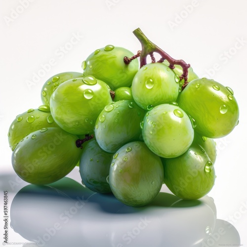 © matteo, Obraz premium Green grapes with water drops isolated on a white background, close-up. generative AI
