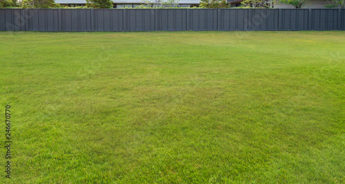 © Naypong Studio, Obraz premium Green grass and black wall background