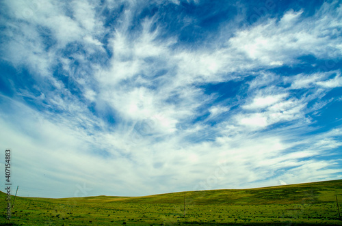 © Виктория Большагина, Fototapeta premium Green grass and blue sky