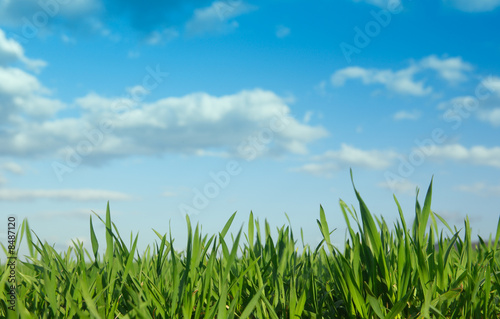© ecobo, Obraz premium Green grass and blue sky