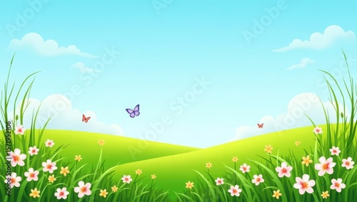 © Fatima, Obraz premium green grass and blue sky, grass and sky, grass and flowers,