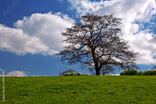 © sas, Obraz premium Green grass and blue sky in early spring