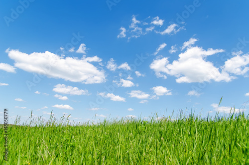 Obraz premium green grass and blue sky with clouds
