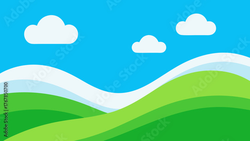© Hasi Dash, Obraz premium green grass and blue sky with clouds