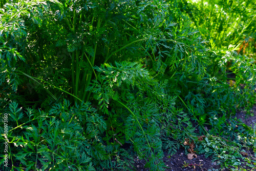 © Lushchikov Valeriy, Obraz premium Green grass and red carrots in the garden