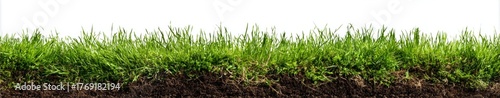© brandon, Fototapeta premium Green Grass and Soil Texture Isolated on White Background.
