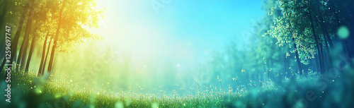 © Saldi, Obraz premium green grass and sun rays