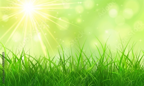 Obraz premium Green grass and sunlight banner background
