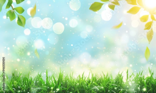 Fototapeta premium Green grass and sunlight banner background
