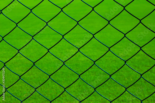 Fototapeta premium Green grass and wire netting texture, background.