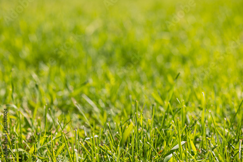 Fototapeta premium Green grass background. Green lawn in the morning.