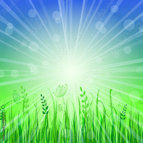 © Novaya, Obraz premium Green Grass Background over Blue Sky