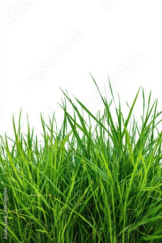 Fototapeta premium Green Grass Blades Against a Clean White Background Isolated Freshness and...