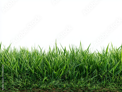 Fototapeta premium green grass blades against a stark white background creating a clean border