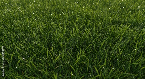 © Jersey, Obraz premium Green Grass Blades with Dew Drops