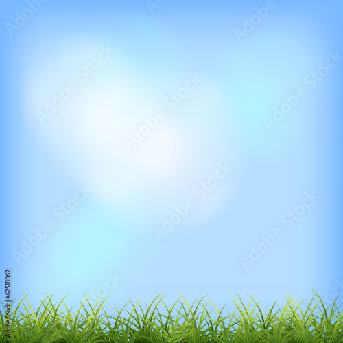 © Nadezda Kostina, Obraz premium Green grass blue sky natural background