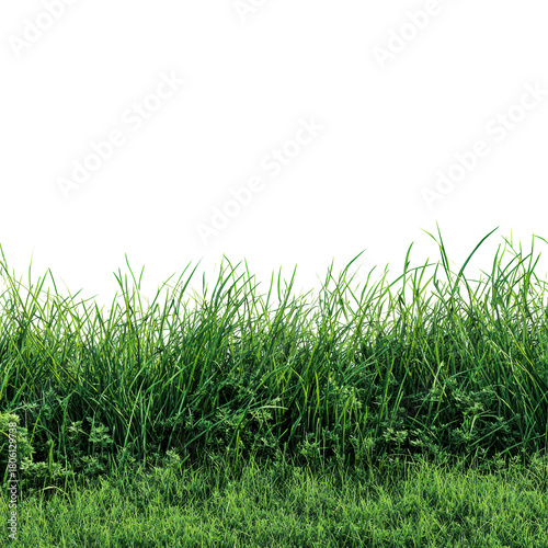 © Khmel, Fototapeta premium Green grass border on white background on a transparent background, cut out