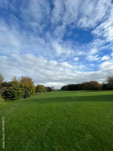 © Nick's Designs, Fototapeta premium green grass cloudy sky