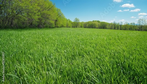 © soyibakter, Fototapeta premium Green grass field and blue sky 17