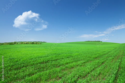 © evgeeenius, Fototapeta premium Green grass field and blue sky with clouds