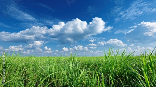 © Ferman Bagus Istuhri, Obraz premium Green grass field under cloudy sky