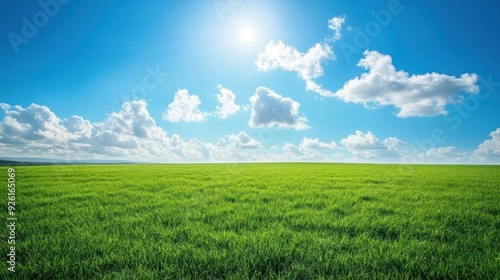 © hanafi 99d, Fototapeta premium Green Grass Field Under Sunny Sky