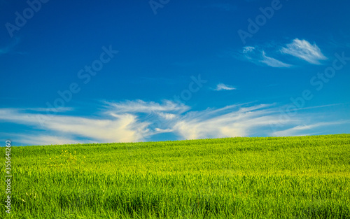 © Viliam, Fototapeta premium Green grass field with blue sky and clouds on a background..