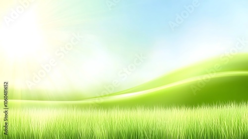 © Christopher, Obraz premium Green Grass Field with Blue Sky Blank Background with Copy Space for Design Projects